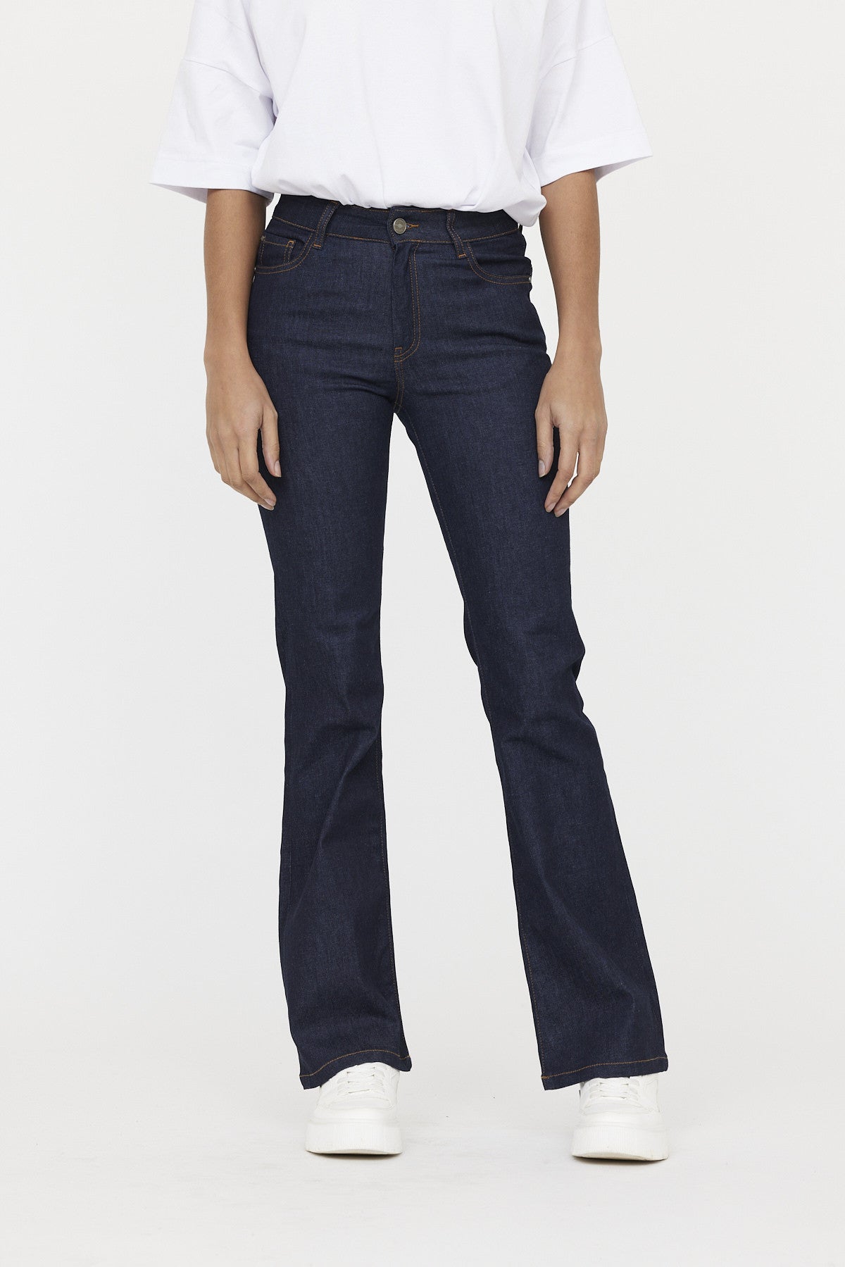 Jean bootcut, évasée à partir du genou, offrant un équilibre parfait entre confort et style. Idéal pour allonger la jambe et créer une silhouette élancée. Ce jean intègre des coutures stratégiquement placées et une coupe spéciale pour rehausser et galber les fesses
