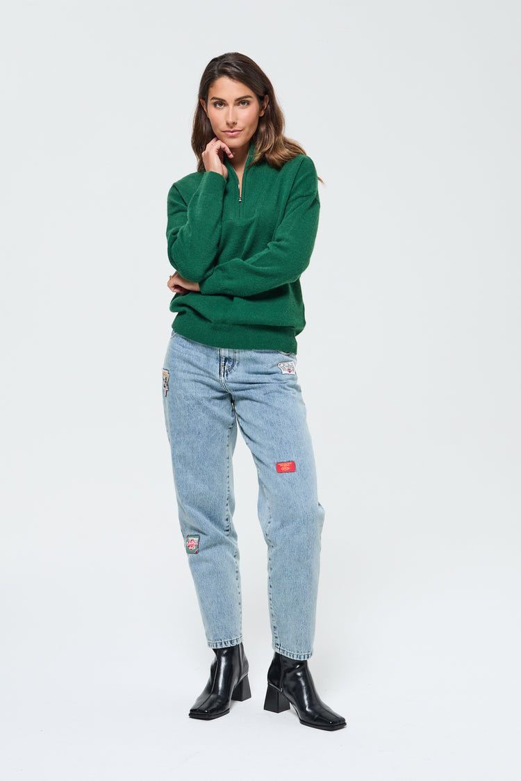 Doté d’un col montant zippé, de manches longues et d’une coupe comfort, il offre une silhouette décontractée sans sacrifier l’élégance. Le zip au col permet de moduler le style selon l’envie, fermé pour une allure structurée ou entrouvert pour une touche plus décontractée.