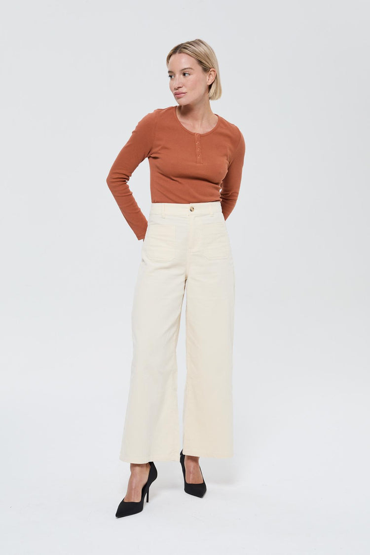 T-shirt manches longues en jersey côtelé incarne une silhouette féminine et confortable, pensée pour épouser naturellement les lignes du corps. Confectionné dans un mélange coton et d'élasthanne, il offre une élasticité légère et un toucher doux, idéal pour un porté seconde peau.