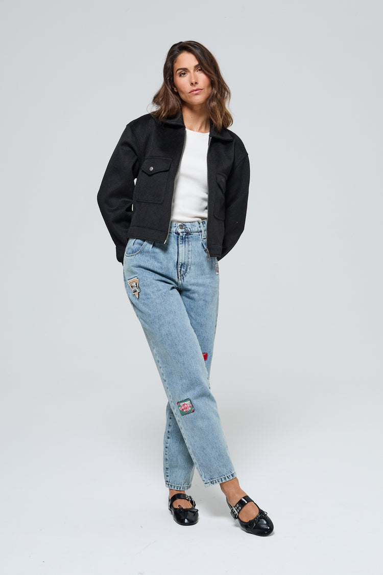 Dotée de manches longues et d’une coupe regular, elle offre une silhouette décontractée tout en restant féminine. Son ouverture zippée sur le devant assure un enfilage facile et ajoute une touche moderne à l’ensemble. Deux poches poitrine structurent la veste, dont celle de gauche est ornée d'une broderie discrète Lee Cooper, signature subtile d’un style affirmé.