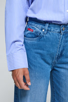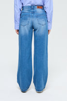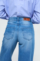 Women's wide leg jeans in 100% cotton, designed to combine natural comfort and contemporary style.