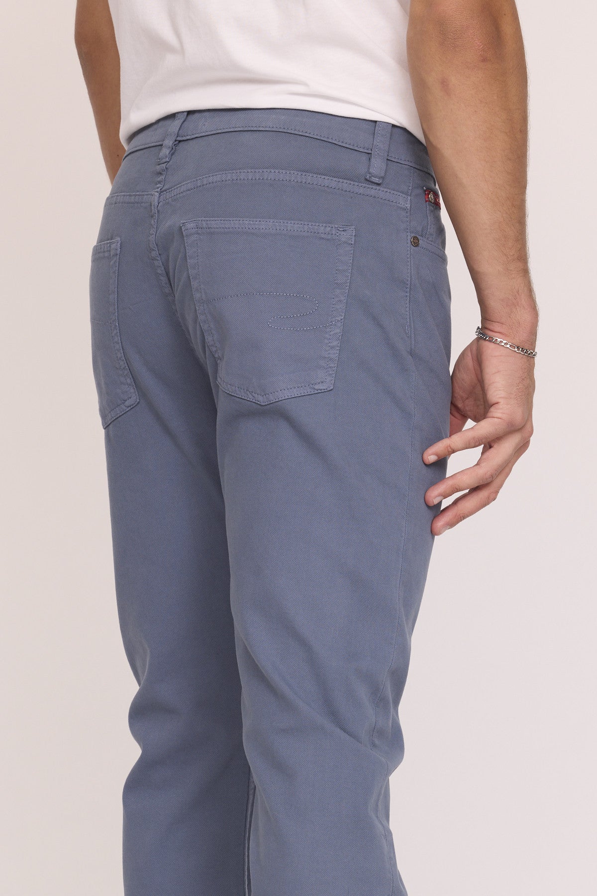 The model is 1m85 tall and wears size 31