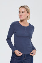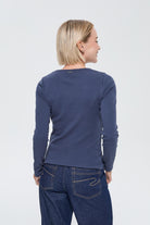 This long-sleeved ribbed jersey T-shirt embodies a feminine and comfortable silhouette, designed to naturally hug the body's contours. Crafted from a cotton and elastane blend, it offers lightweight stretch and a soft feel, ideal for a second-skin fit.