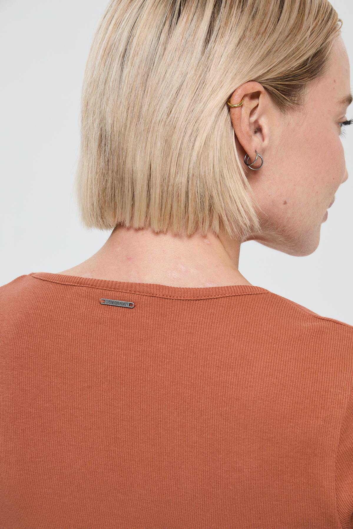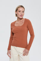 This long-sleeved ribbed jersey T-shirt embodies a feminine and comfortable silhouette, designed to naturally hug the body's contours. Crafted from a cotton and elastane blend, it offers lightweight stretch and a soft feel, ideal for a second-skin fit.