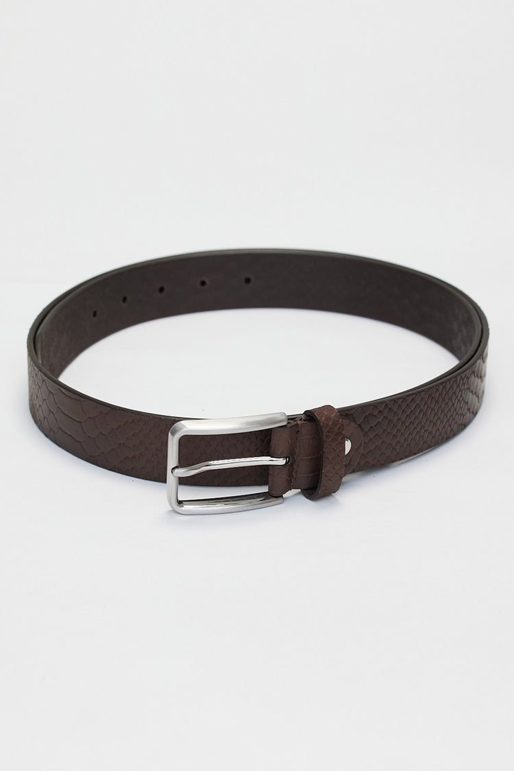 Ceinture en cuir effet peau de serpent et boucle argentée
