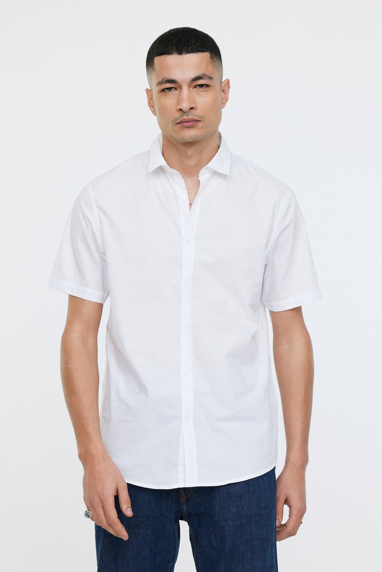 Chemise basique manches courtes en popeline de coton biologique, avec logo imprimé à la poitrine